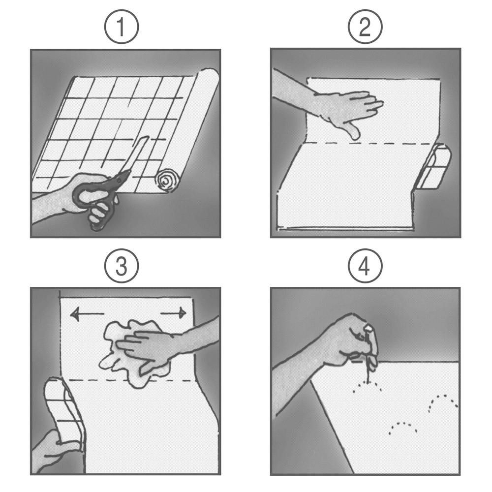 lepení samolepící fólie - tapety - krok 1 lepení samolepící fólie - tapety - krok 2 lepení samolepící fólie - tapety - krok 3 lepení samolepící fólie - tapety - krok 4