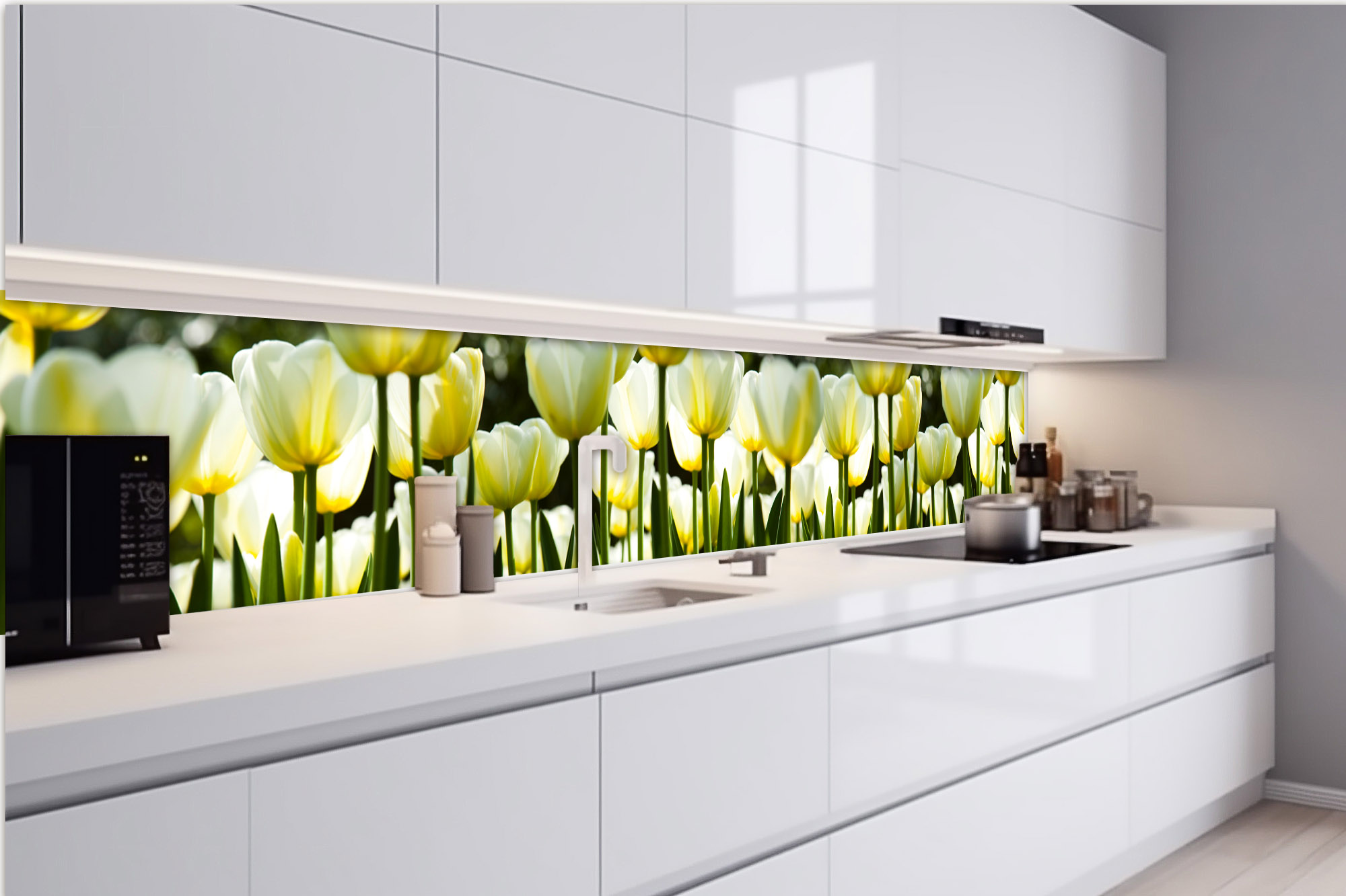 KI-420-009 Самозалепващ фототапет за кухня – Бели лалета 420 x 60 см