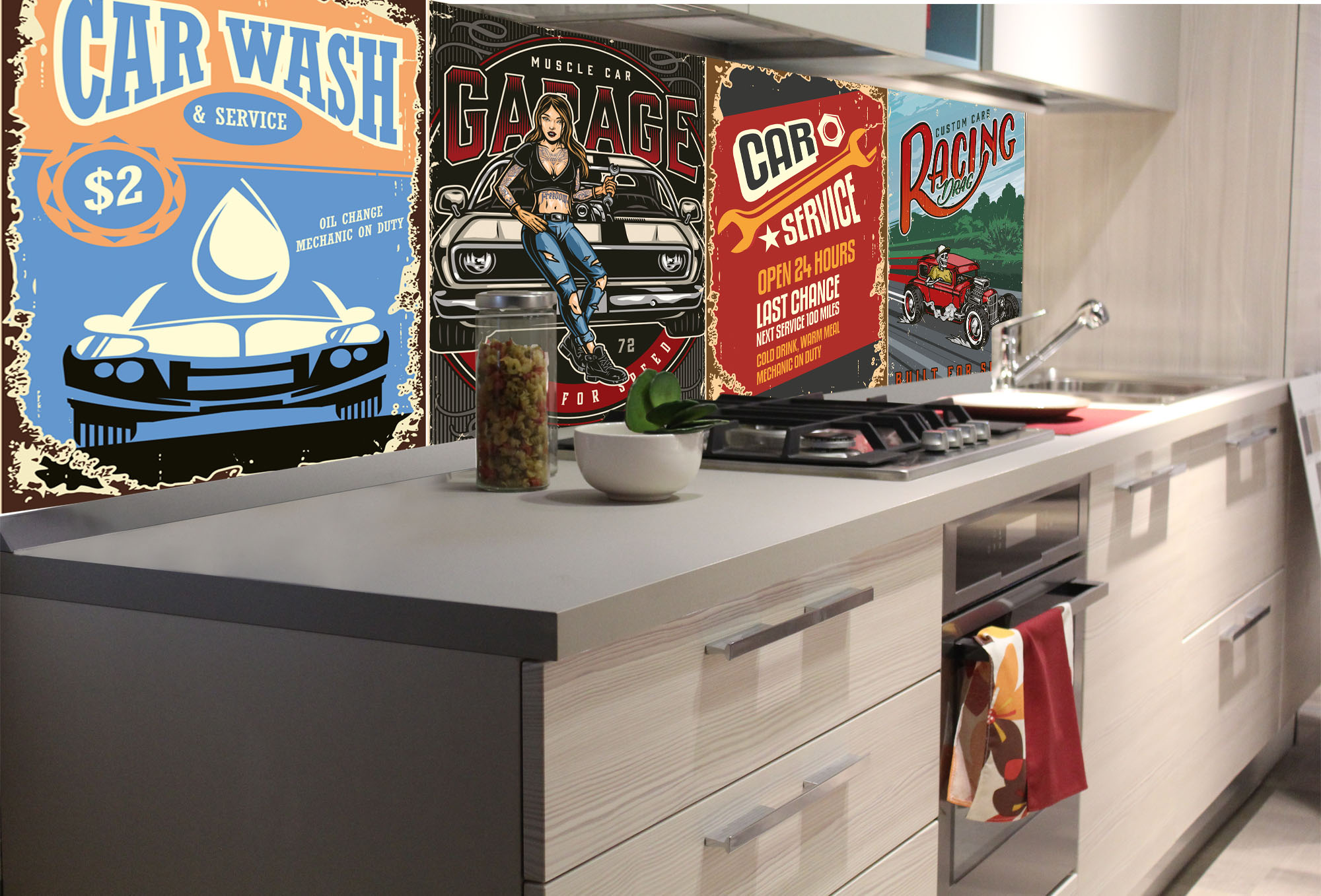 KI-180-221 Самозалепващ фототапет за кухня – Винтидж плакати 180 x 60 см