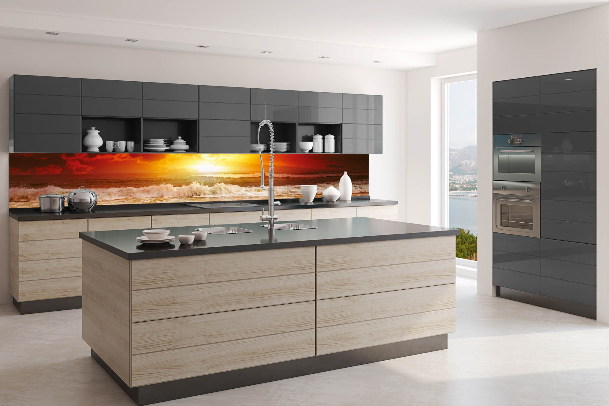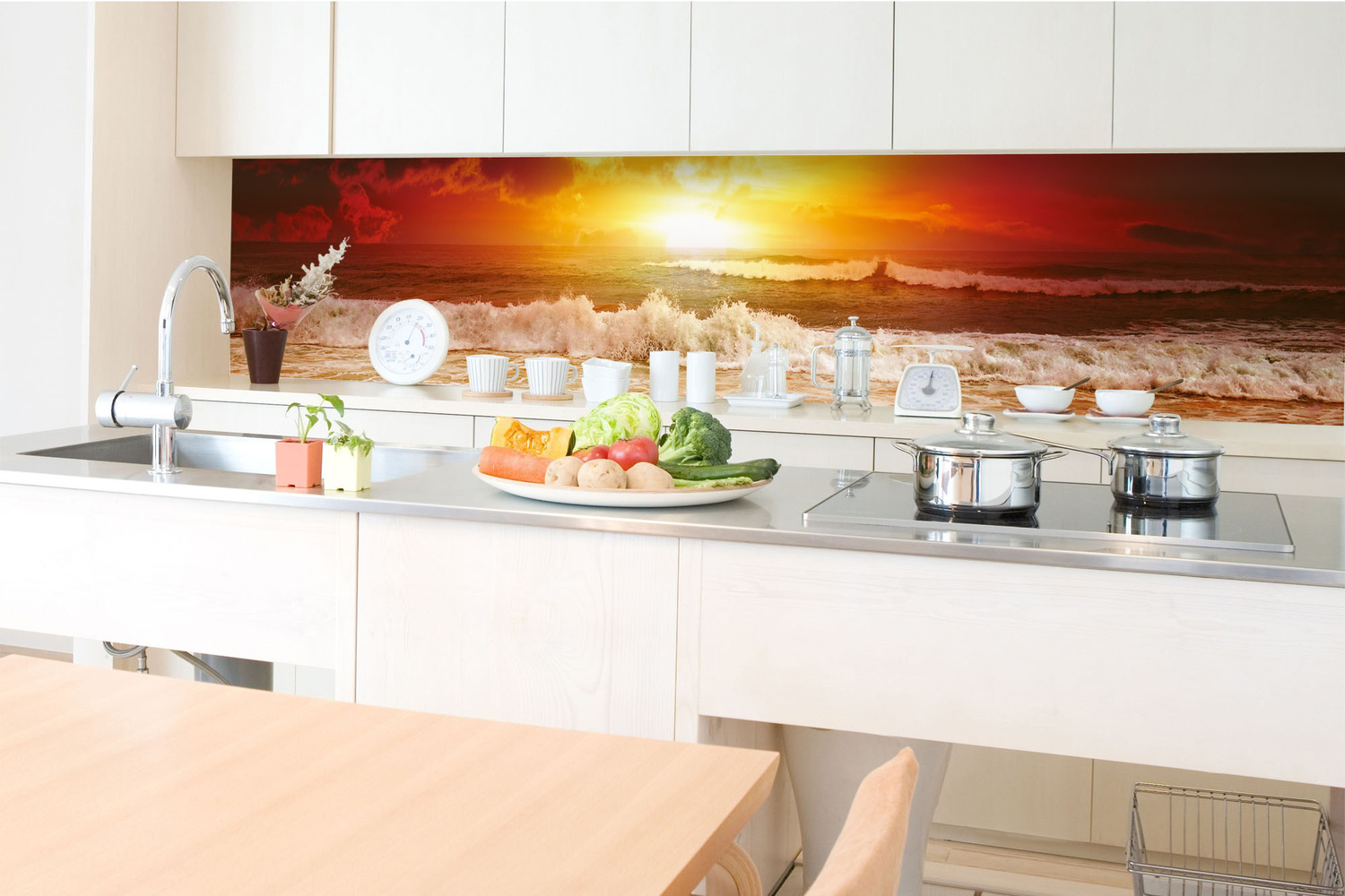 KI-350-204 Самозалепващ фототапет за кухня – Вълни при залез 350 x 60 см