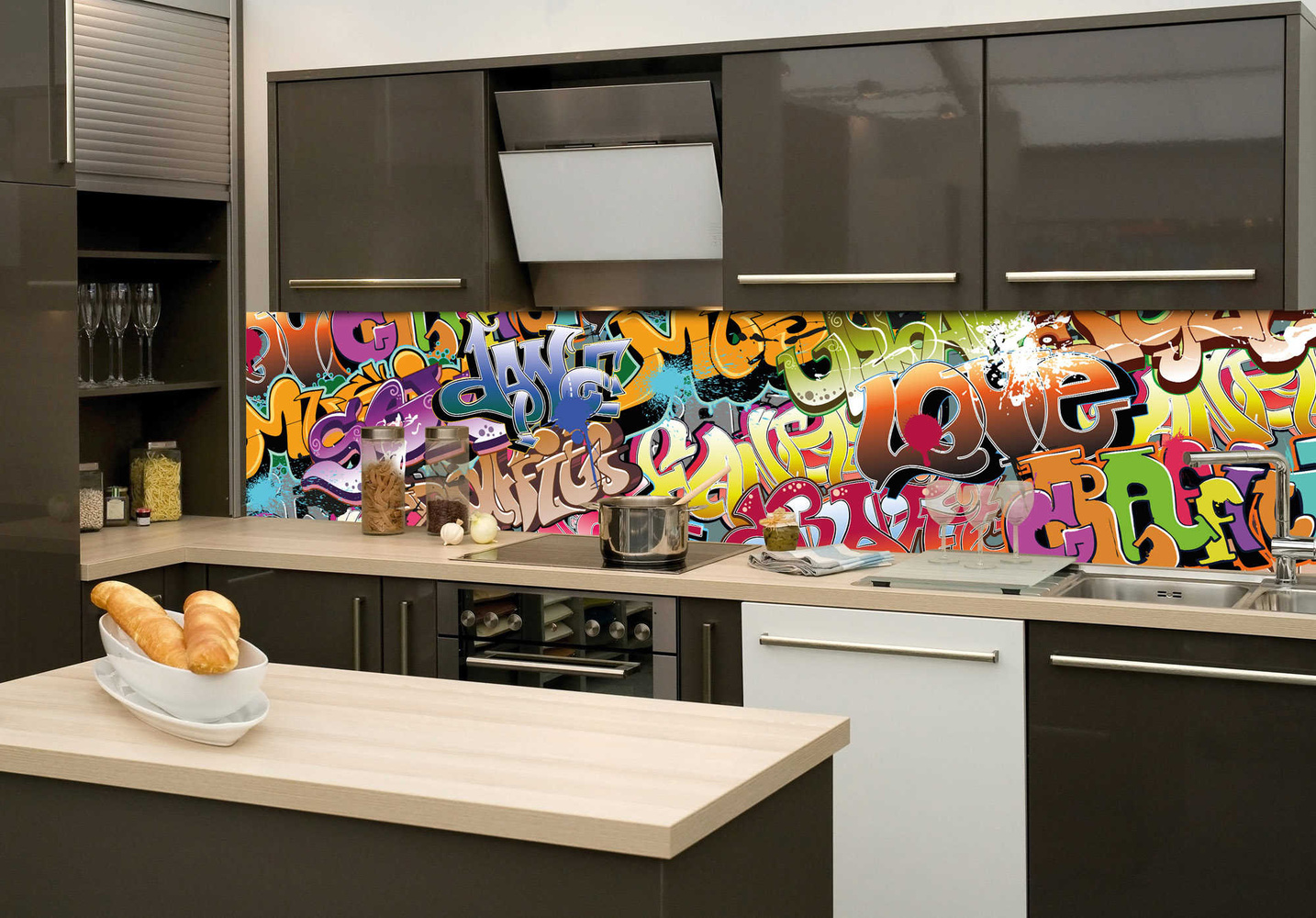 KI-260-020 Самозалепващ фототапет за кухня – Графити 260 x 60 см