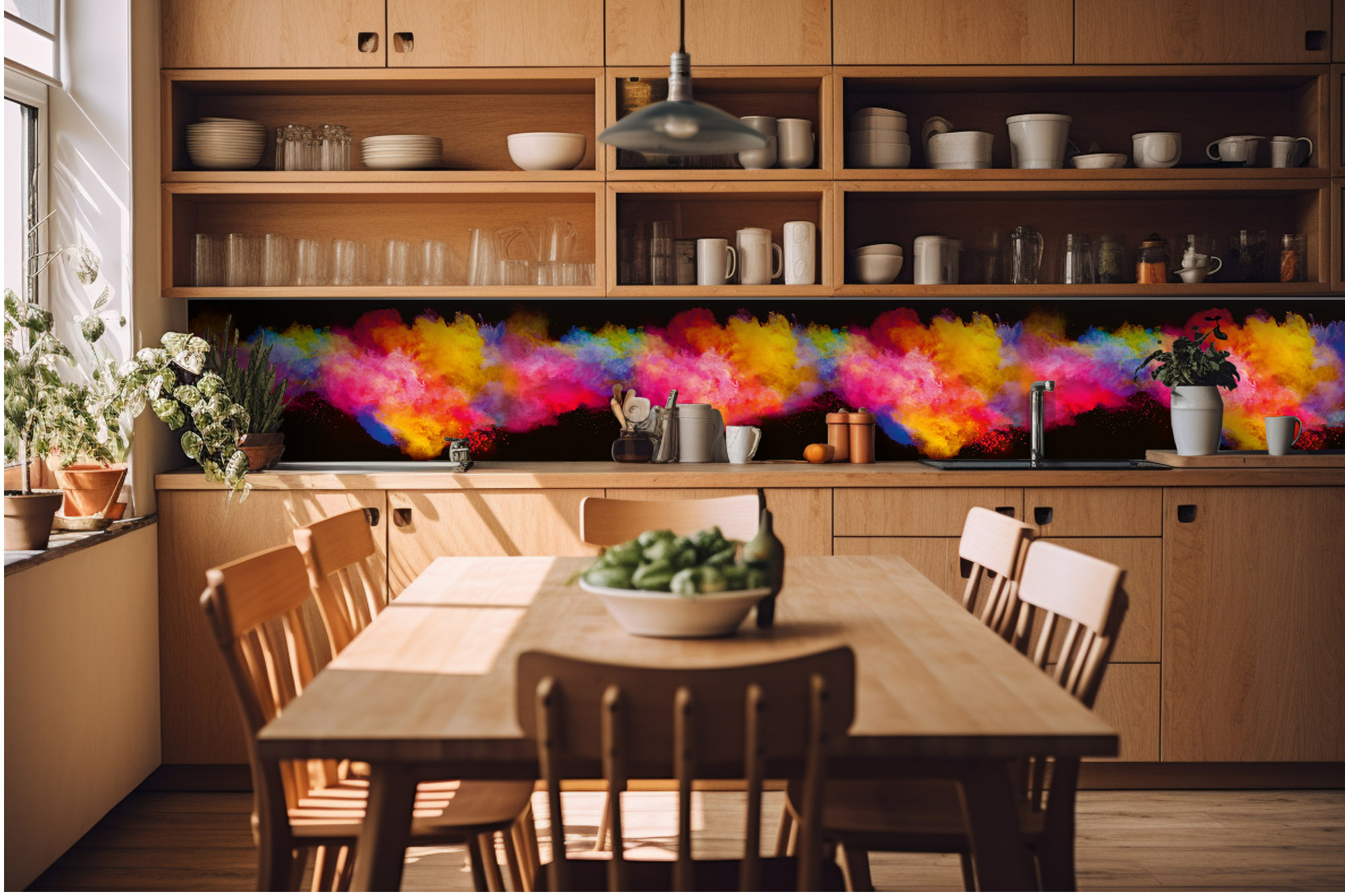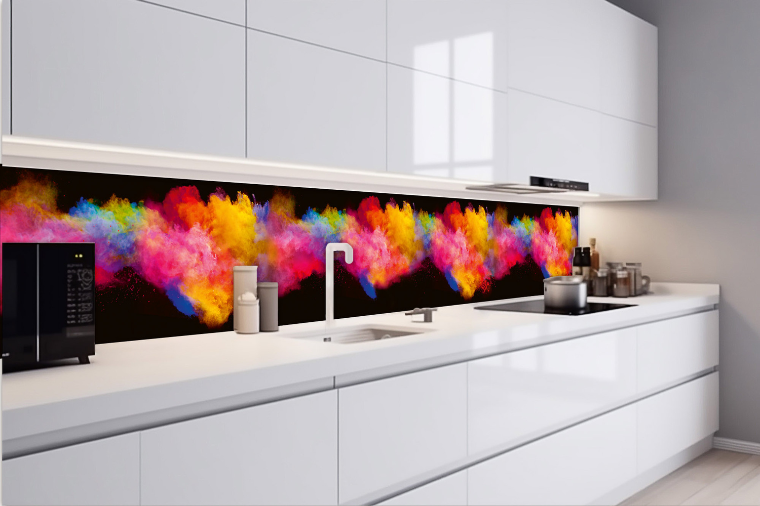 KI-420-288 Самозалепващ фототапет за кухня – Експлозия от цветен прах 420 x 60 см