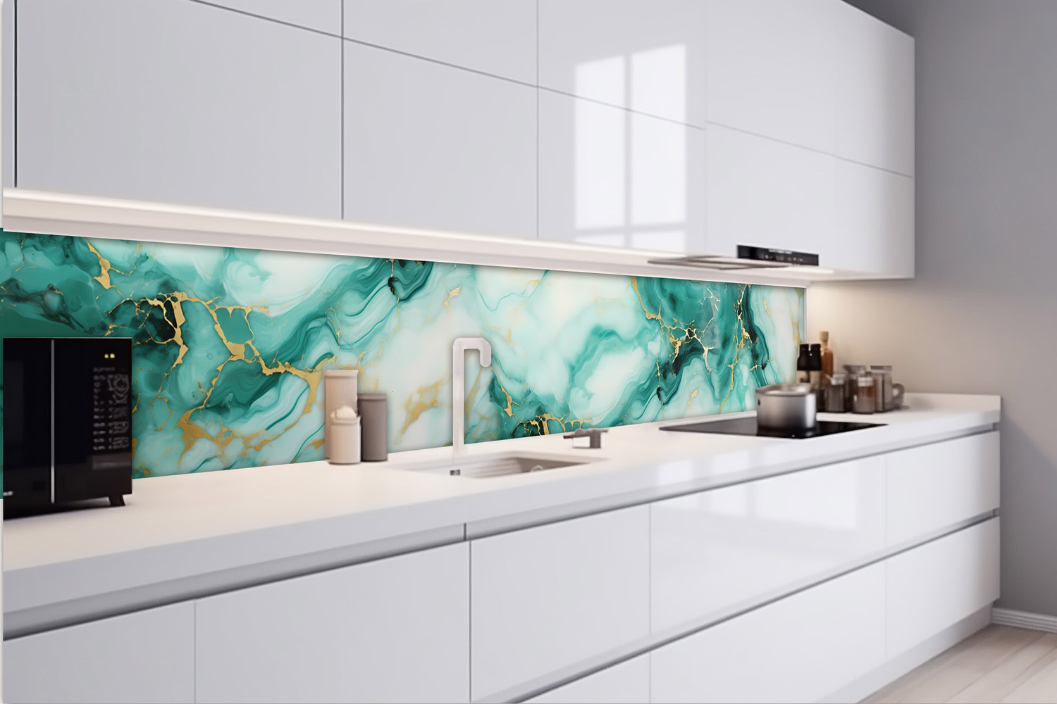 KI-420-208 Самозалепващ фототапет за кухня – Изумруден мрамор 420 x 60 см