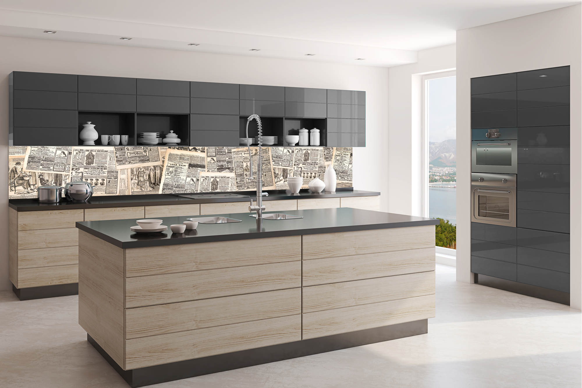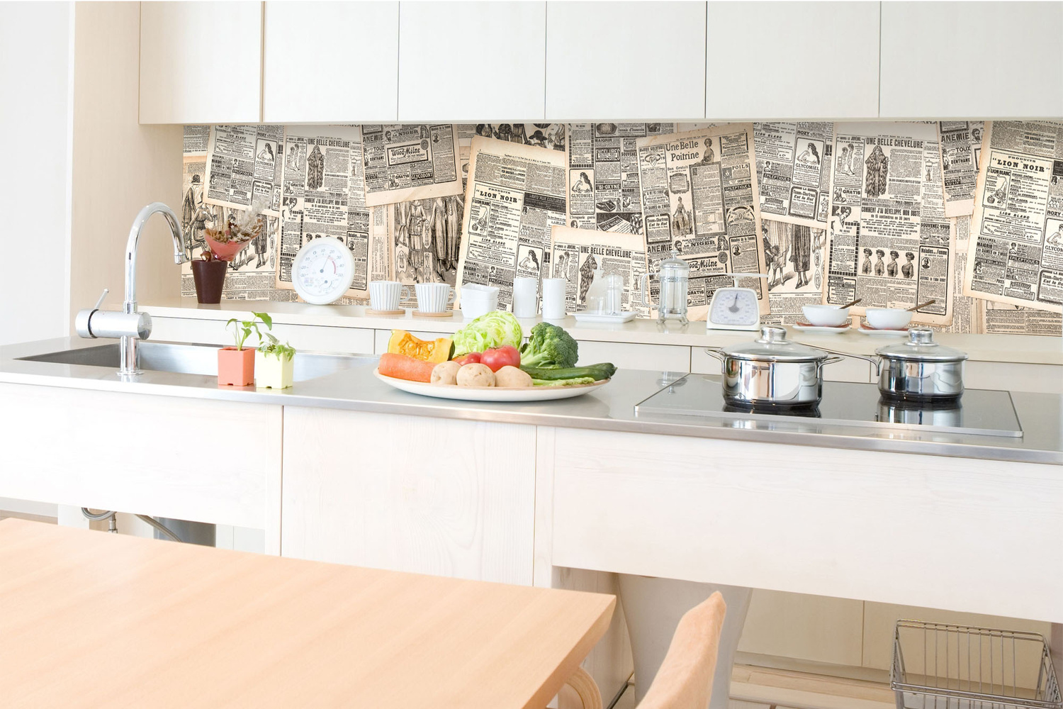 KI-350-222 Самозалепващ фототапет за кухня – Клампери за вестници 350 x 60 см
