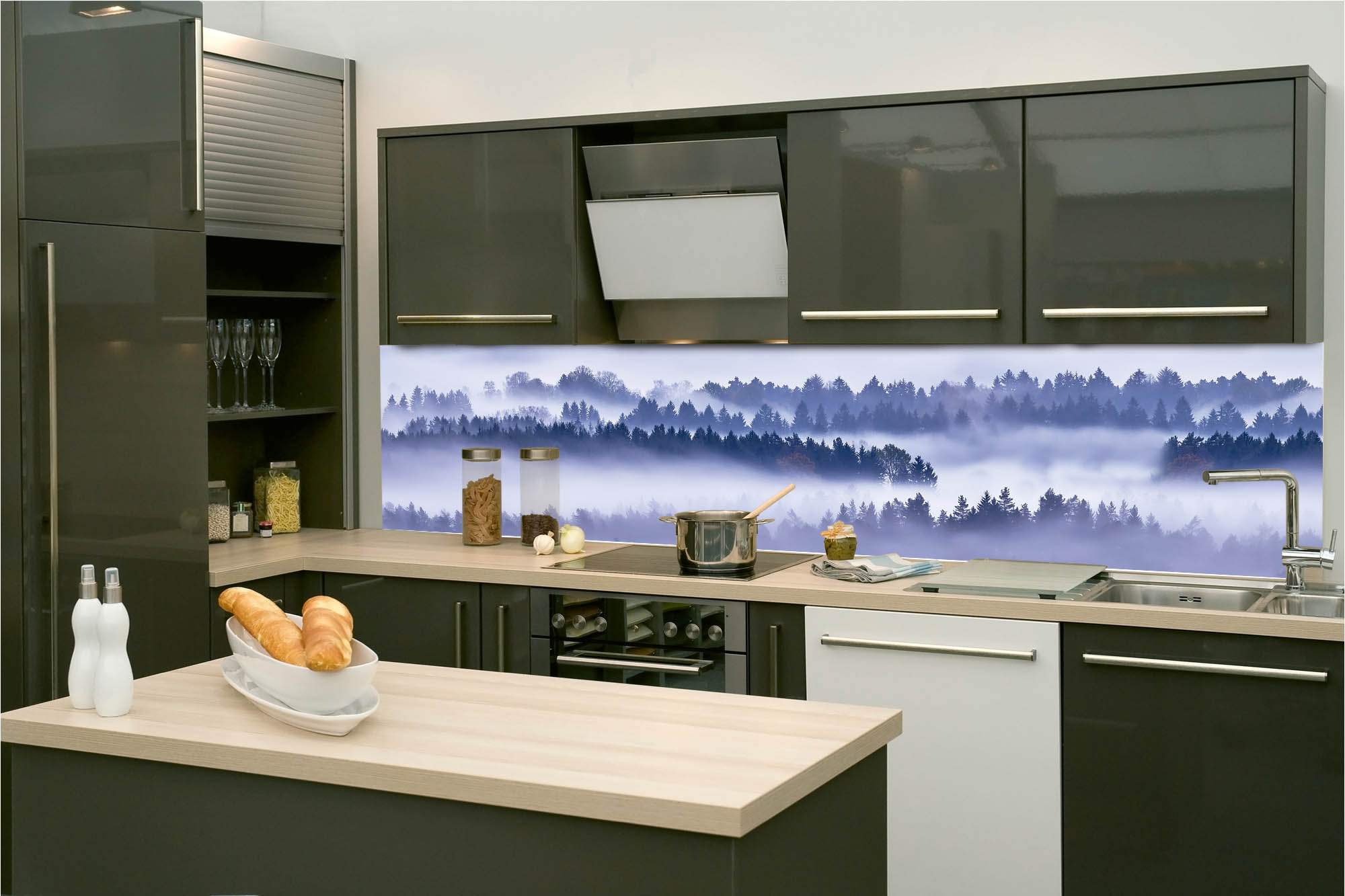 KI-260-195 Самозалепващ фототапет за кухня – Мъгла между дърветата 260 x 60 см