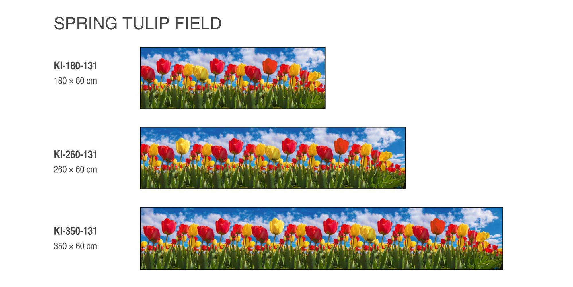 KI-350-131 Самозалепващ фототапет за кухня – Поле с лалета 350 x 60 см