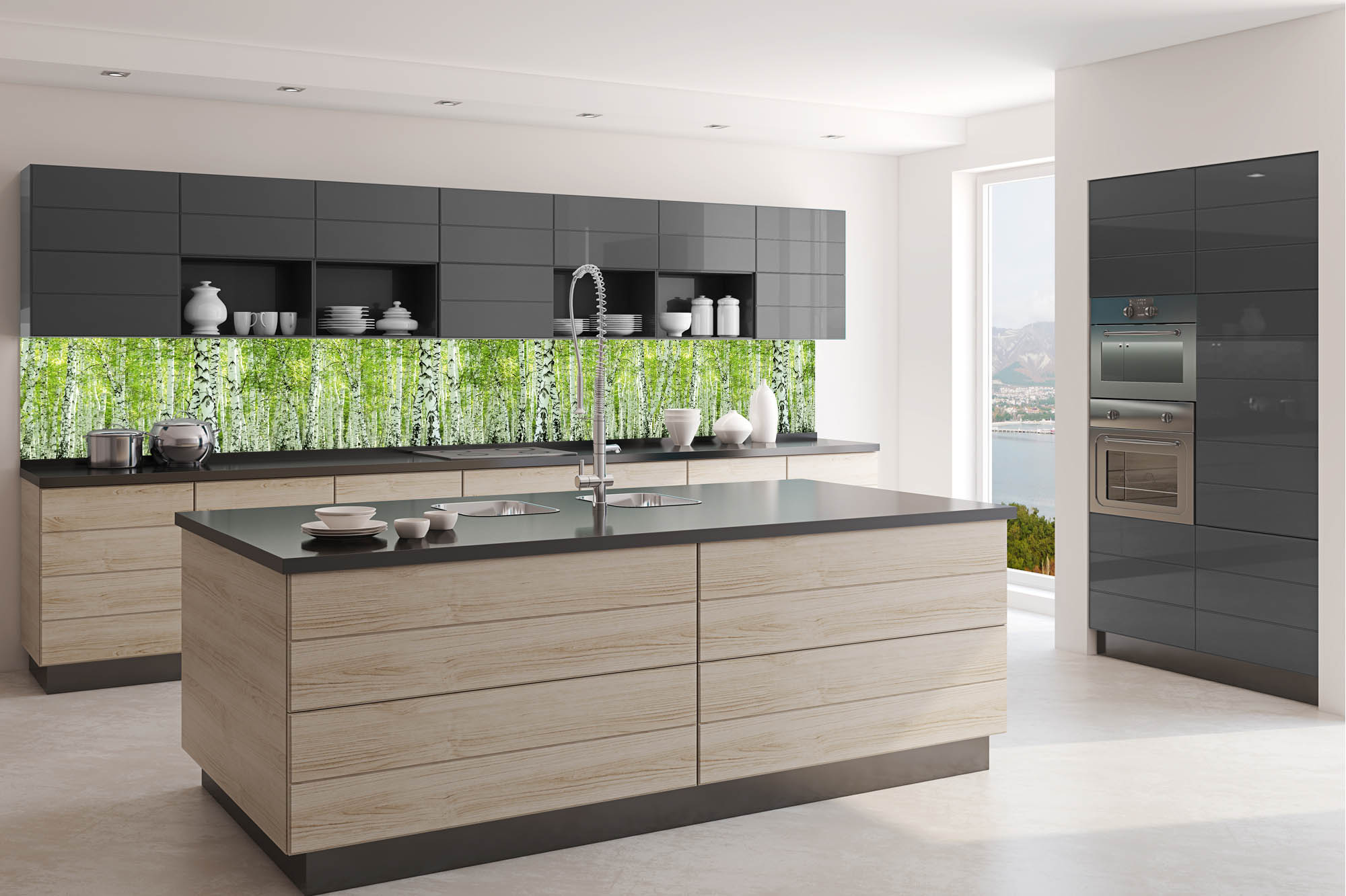 KI-350-193 Самозалепващ фототапет за кухня – Пролетна брезова горичка 350 x 60 см