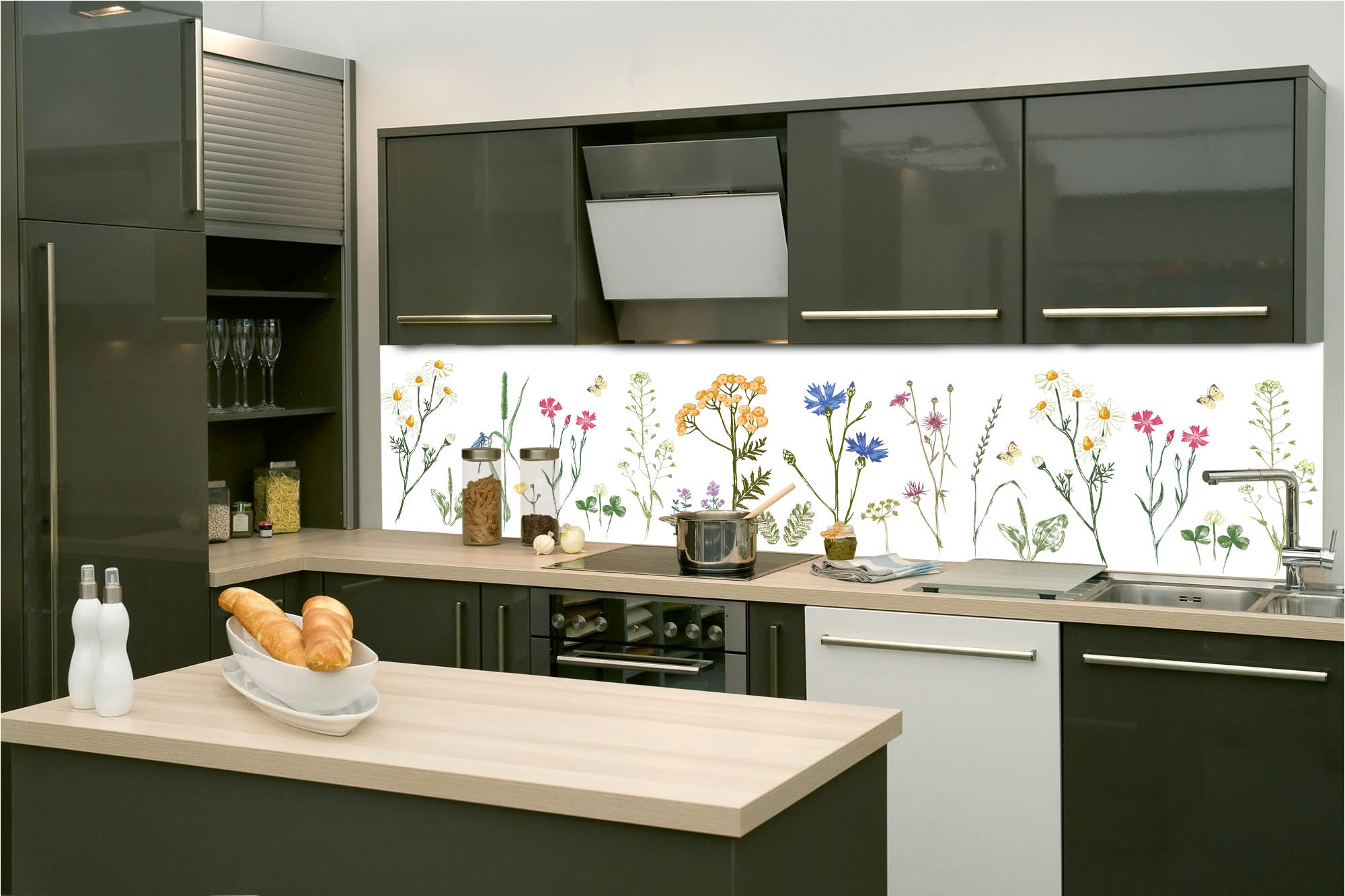 KI-260-219 Самозалепващ фототапет за кухня – Хербарийна рисунка 260 x 60 см