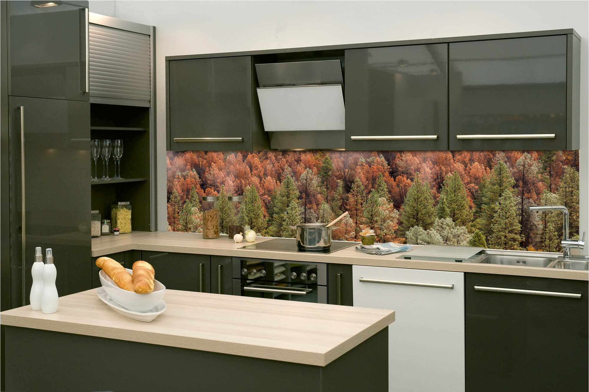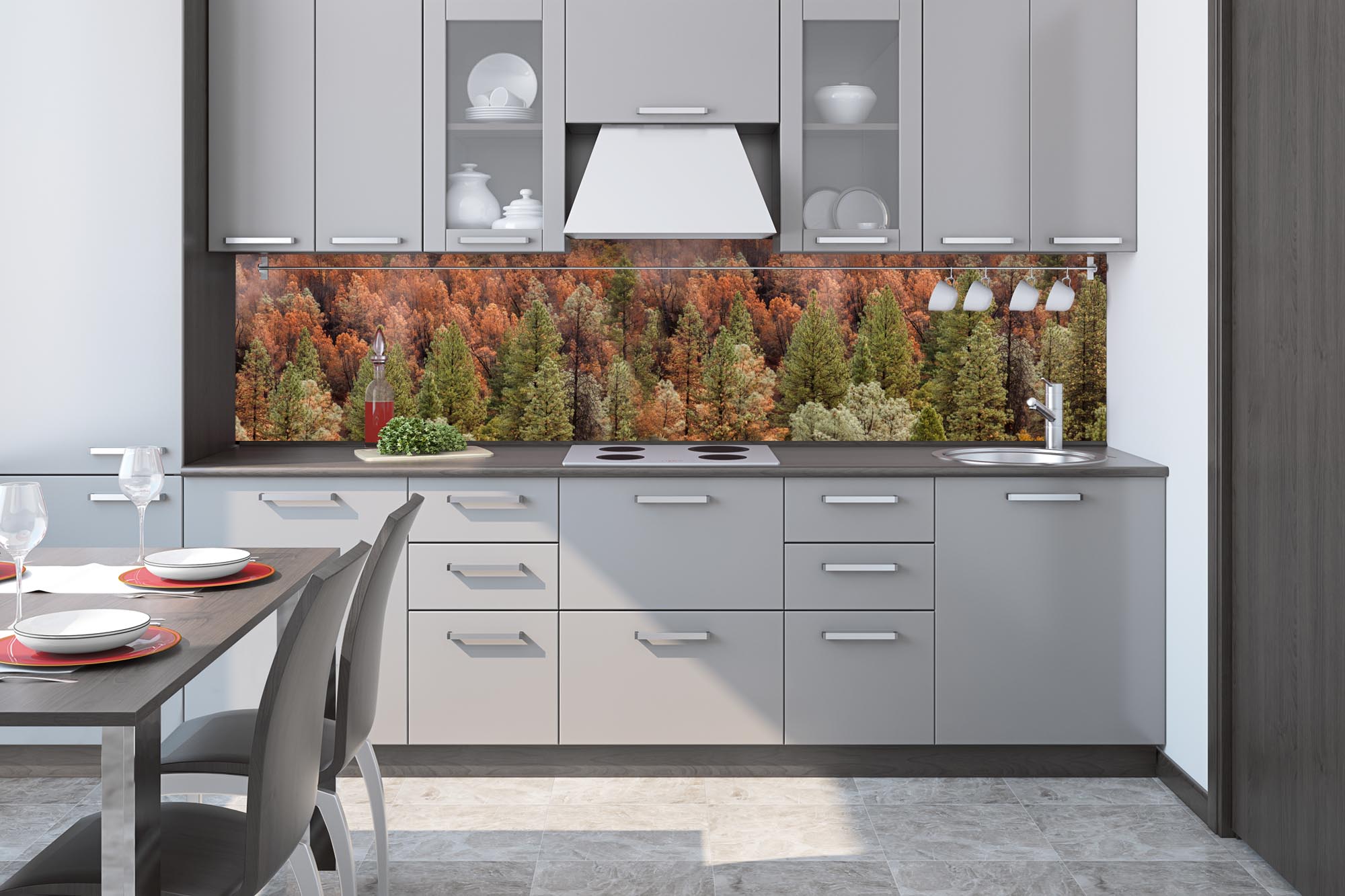 KI-260-198 Самозалепващ фототапет за кухня – Цветна борова горичка 260 x 60 см