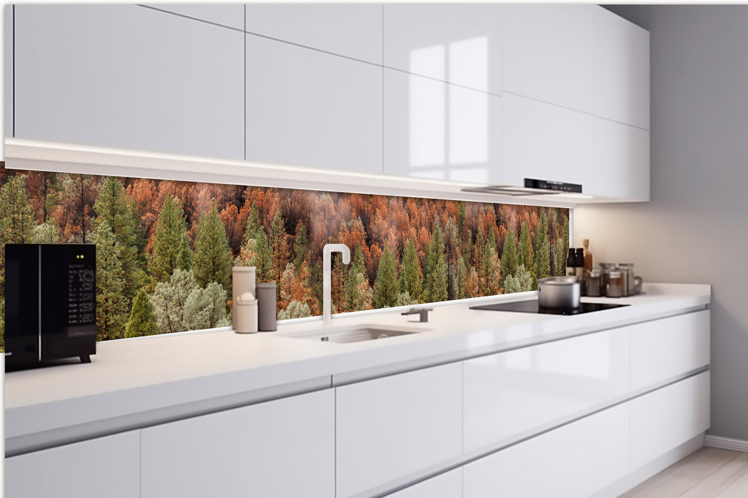 KI-420-198 Самозалепващ фототапет за кухня – Цветна борова горичка 420 x 60 см