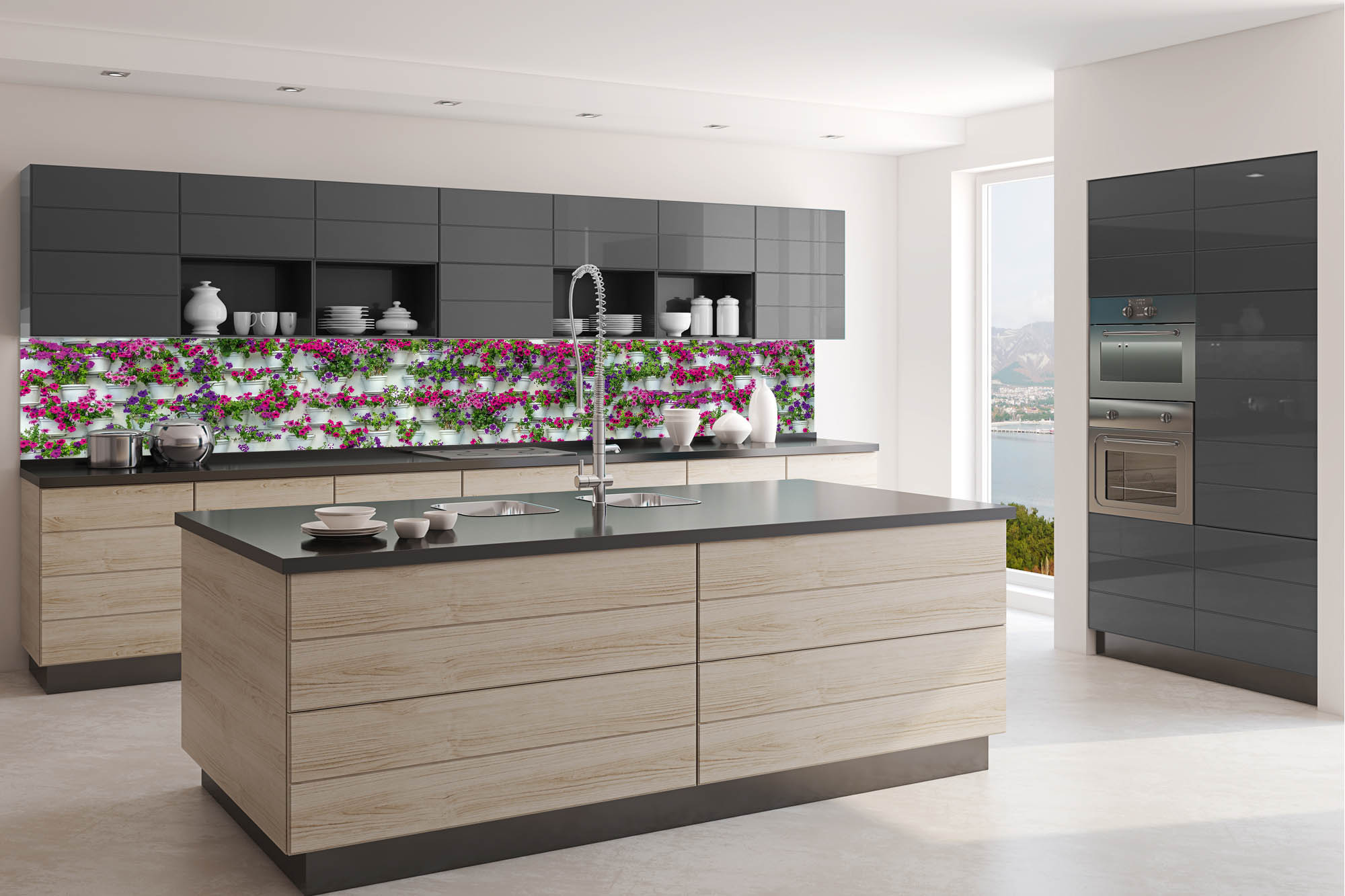 KI-350-176 Самозалепващ фототапет за кухня – Цветя в кутии 350 x 60 см