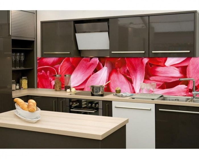KI-260-056 Самозалепващ фототапет за кухня – Червени венчелистчета 260 x 60 см