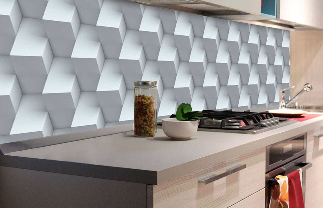 KI-180-096 Самозалепващ фототапет за кухня – 3D кубна стена 180 x 60 см