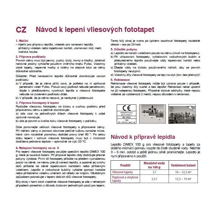 При поръчка на която и да е флизелинова фототапета от колекцията DIMEX LINE, в нашия онлайн магазин dimex-tapety.cz автоматично получавате висококачествено 100-грамово лепило за флизелинови фототапети БЕЗПЛАТНО.