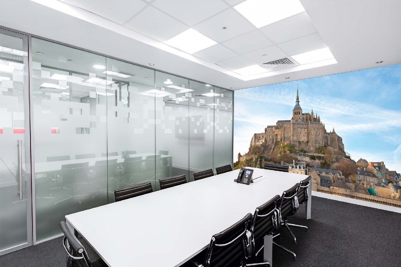 Поради многократно увеличения мотив е необходимо да се има предвид, че препоръчителното разстояние за наблюдение на фототапета е поне 2 метра.