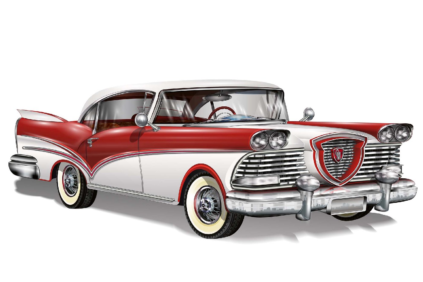 Флизелинов фототапет Червено-бяла ретро кола 375 x 250 см