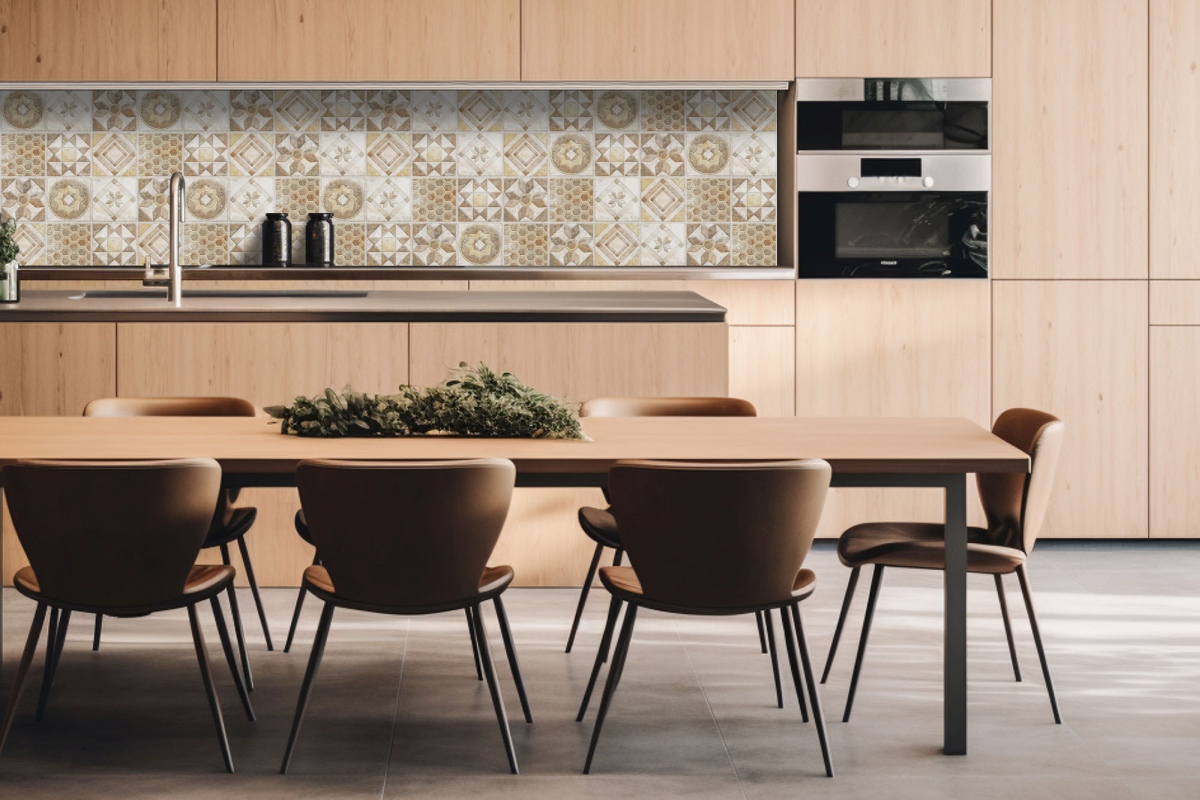 Дибонд облицовъчна плоскост за кухненски гръб Бежови плочки - 260 x 60 см