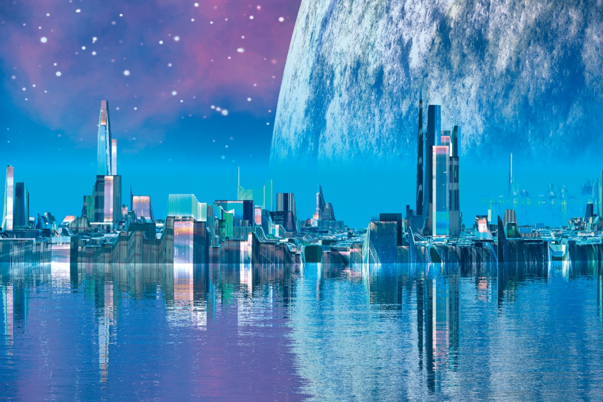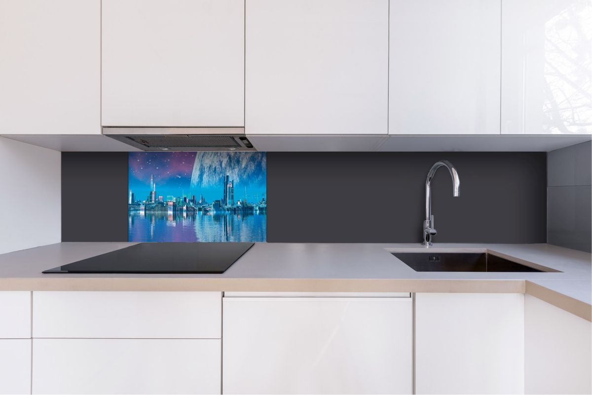 Дибонд облицовъчна плоскост за кухненски гръб Град на бъдещето - 60 x 40 см