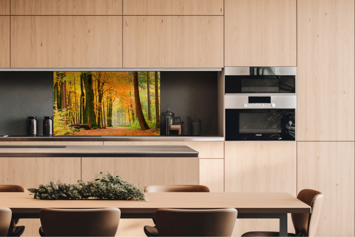 Дибонд облицовъчна плоскост за кухненски гръб Есенна гора - 100 x 60 см