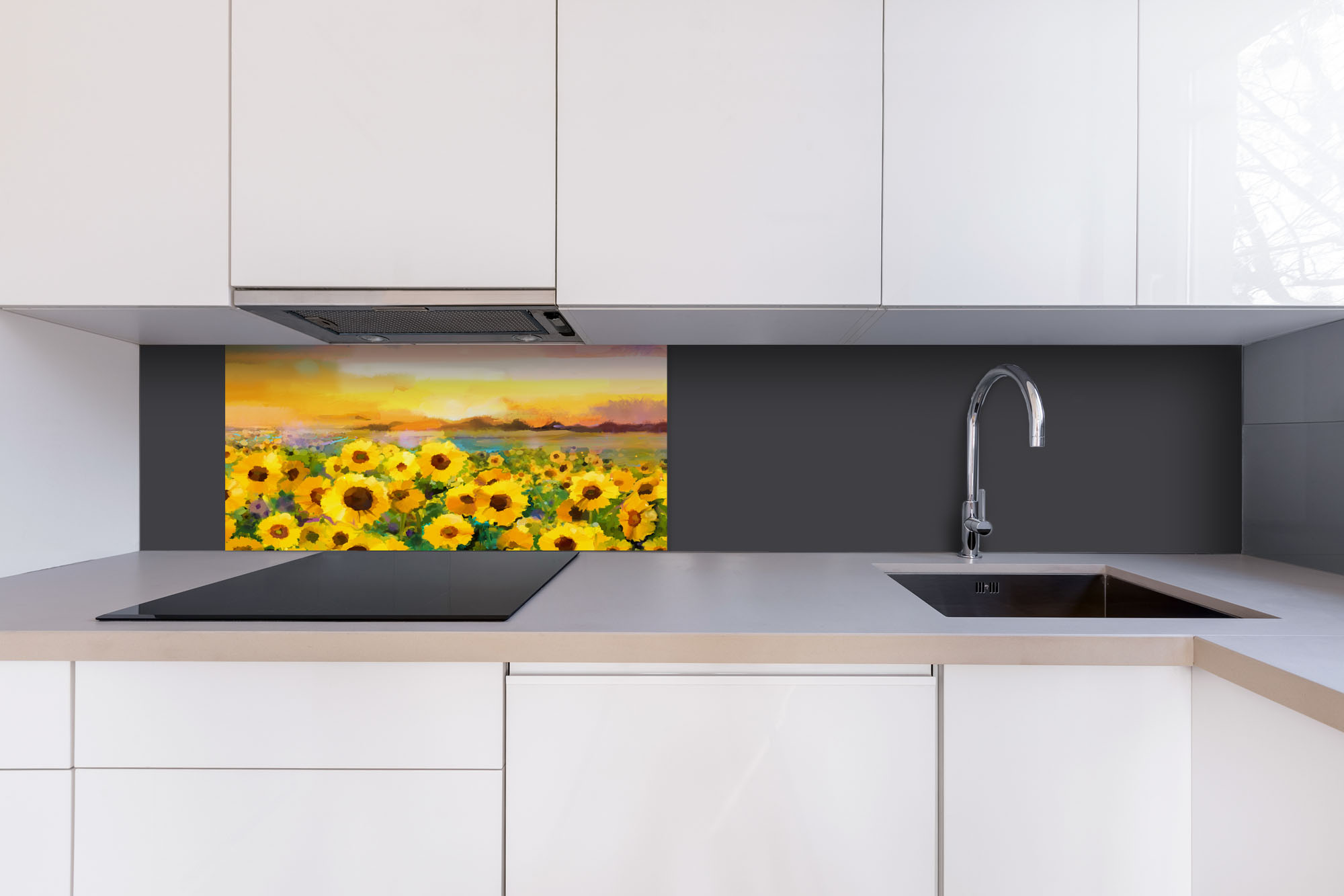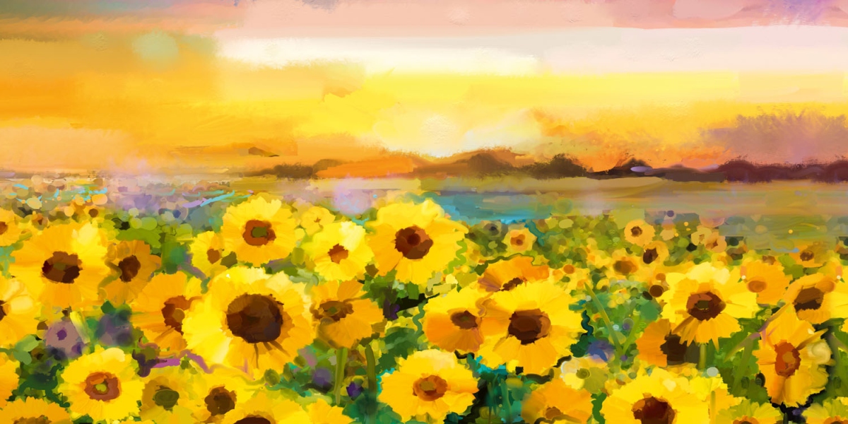 Дибонд облицовъчна плоскост за кухненски гръб Картина със слънчогледи - 80 x 40 см