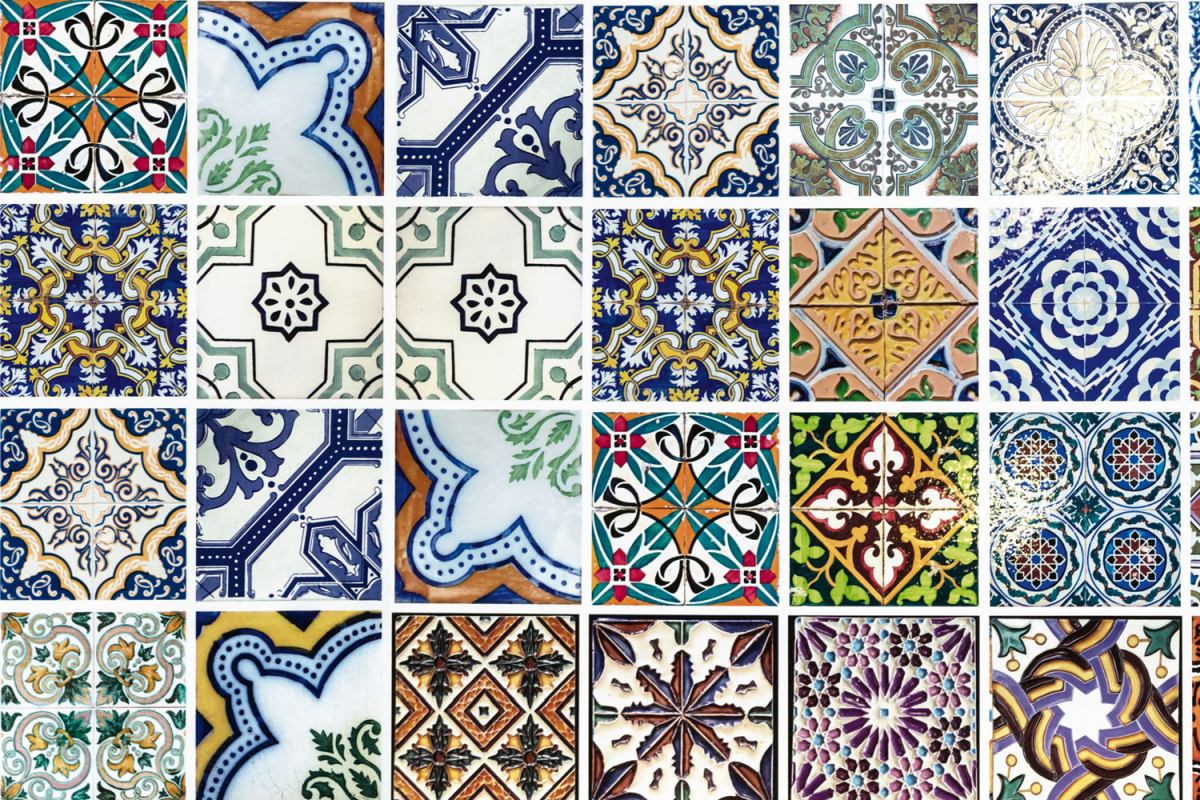 Дибонд облицовъчна плоскост за кухненски гръб Лисабонски плочки - 60 x 40 см