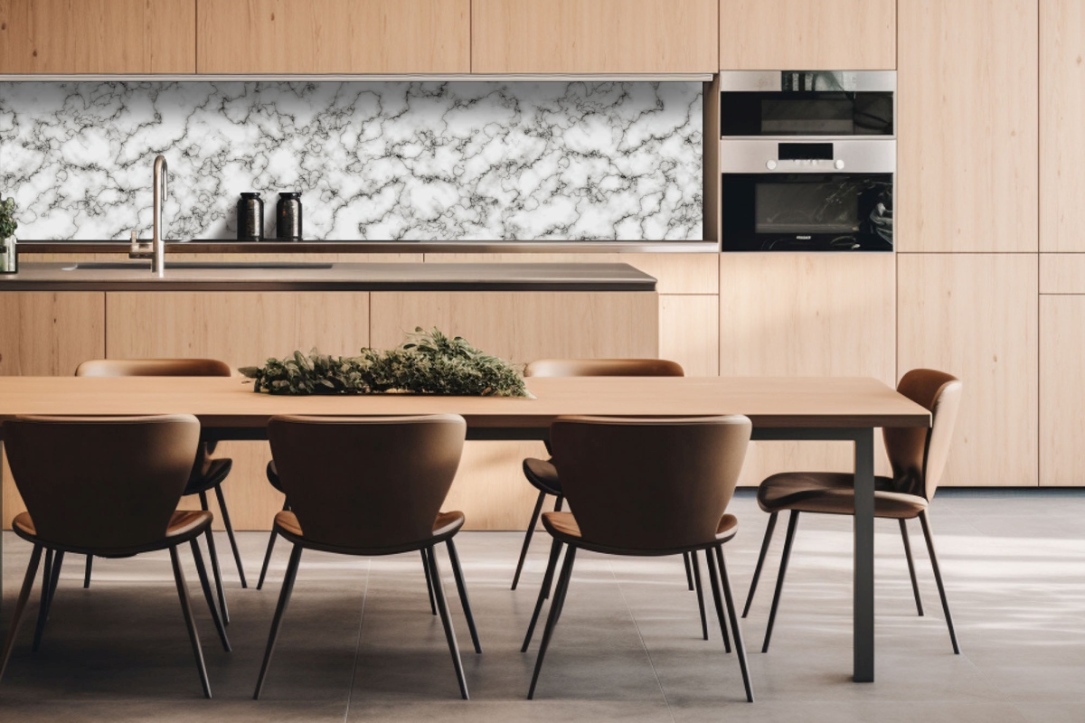 Дибонд облицовъчна плоскост за кухненски гръб Модел от бял мрамор - 260 x 60 см