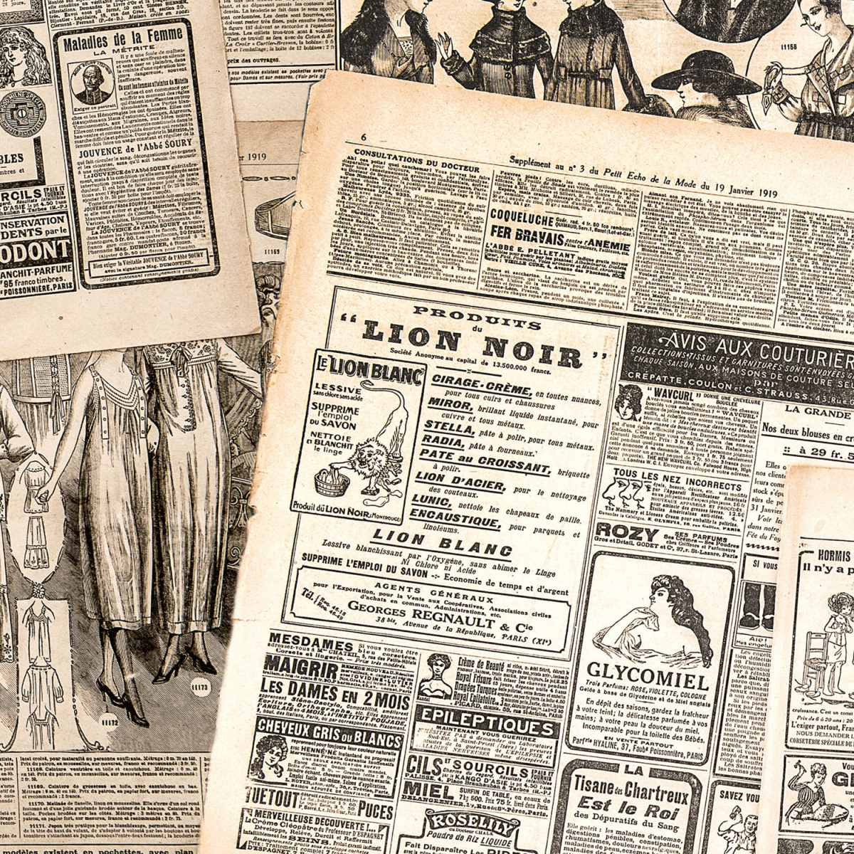 Дибонд облицовъчна плоскост за кухненски гръб Откъси от вестник - 60 x 60 см