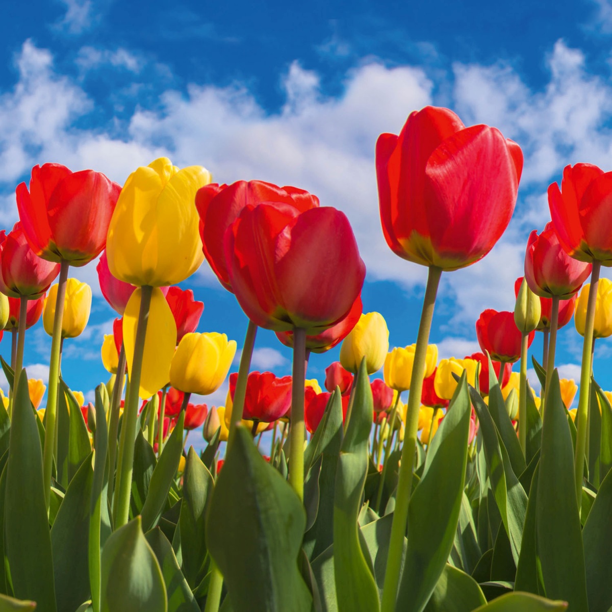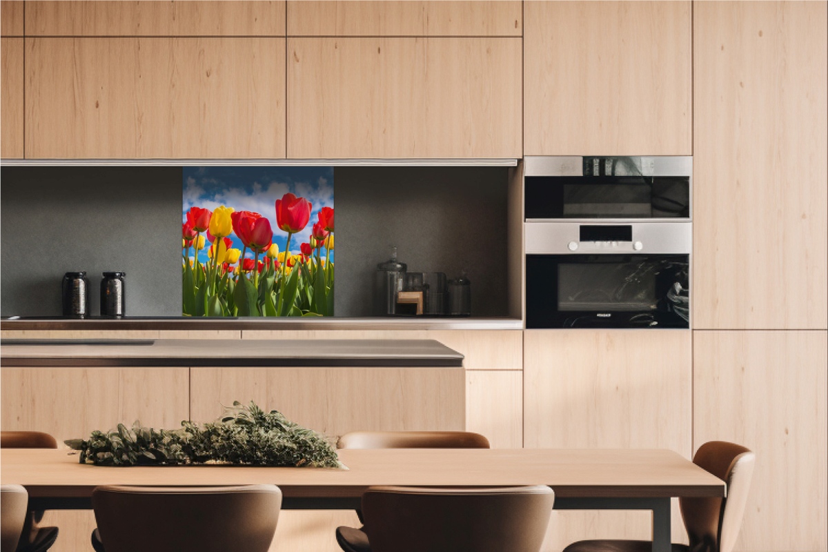 Дибонд облицовъчна плоскост за кухненски гръб Поле с лалета - 60 x 60 см