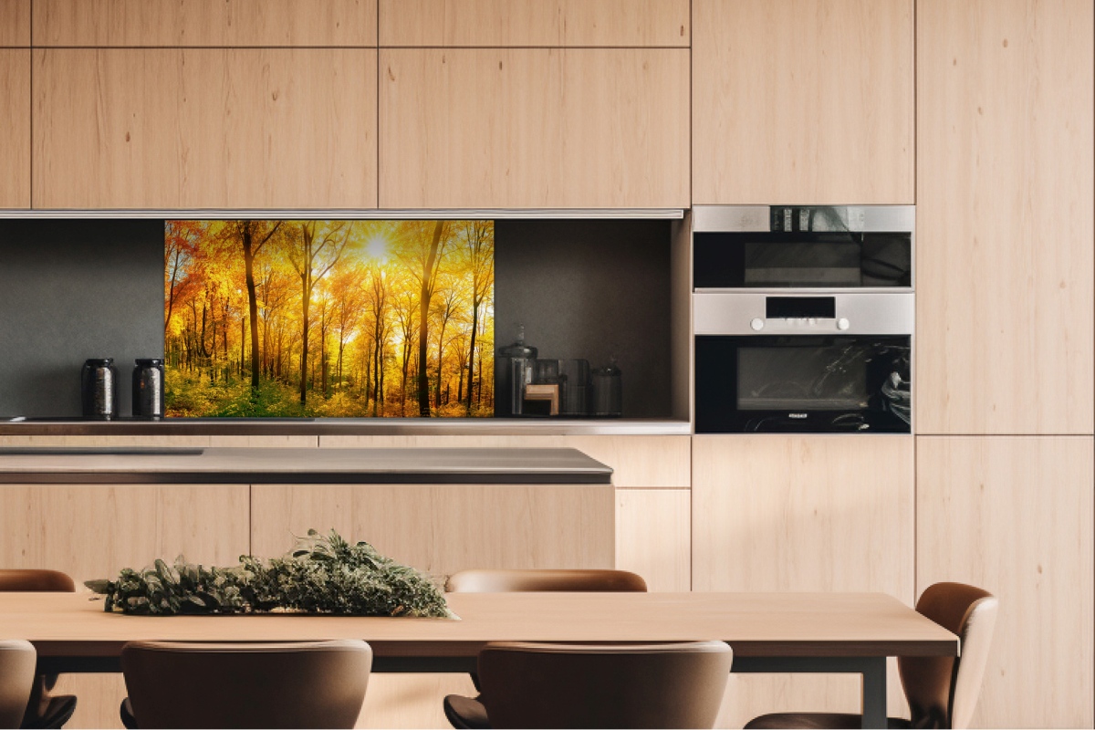 Дибонд облицовъчна плоскост за кухненски гръб Слънчева гора - 100 x 60 см