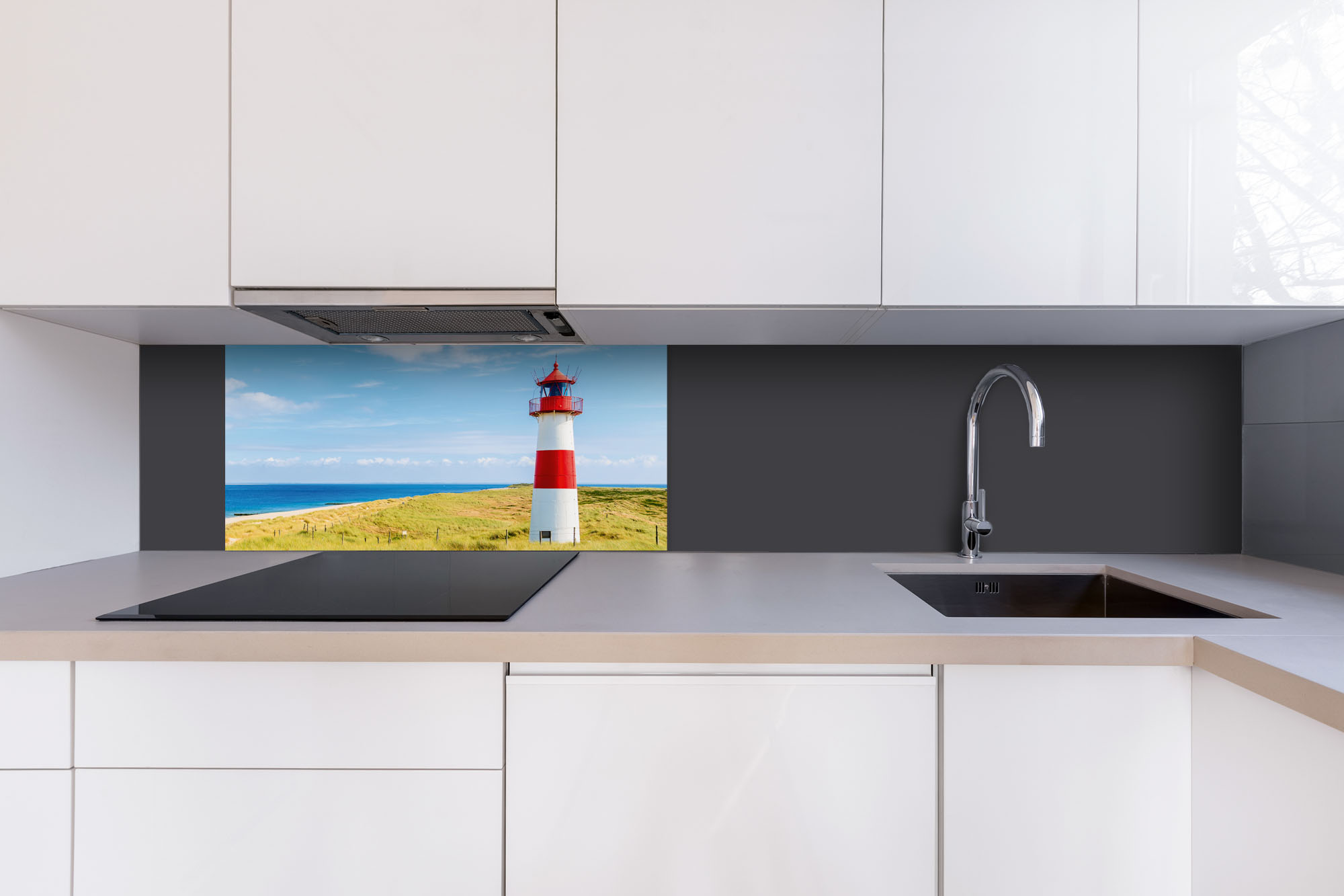 Дибонд облицовъчна плоскост за кухненски гръб Фар на плажа - 80 x 40 см