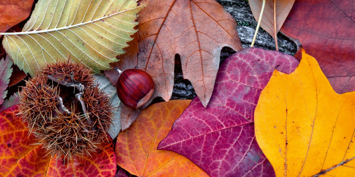 Дибонд облицовъчна плоскост за кухненски гръб Есенни листа - 80 x 40 см