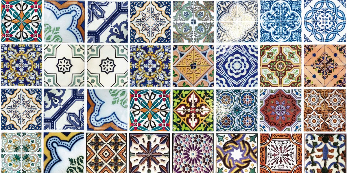 Дибонд облицовъчна плоскост за кухненски гръб Лисабонски плочки - 80 x 40 см