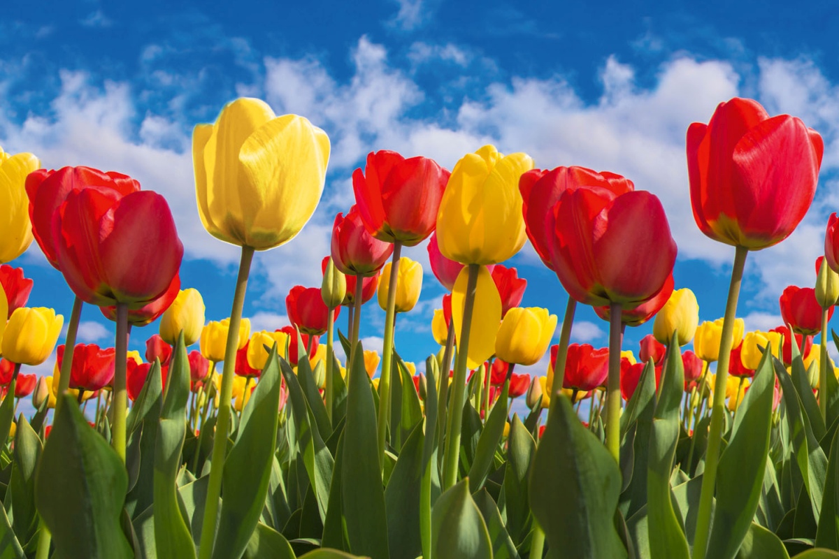 Дибонд облицовъчна плоскост за кухненски гръб Поле с лалета - 60 x 40 см