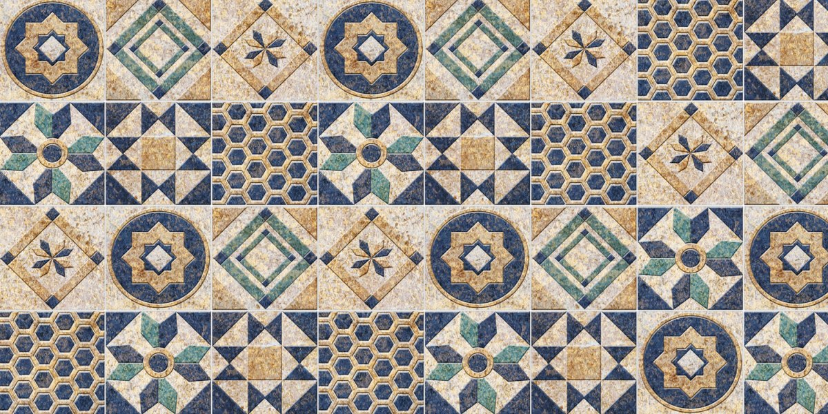 Дибонд облицовъчна плоскост за кухненски гръб Сини плочки - 80 x 40 см
