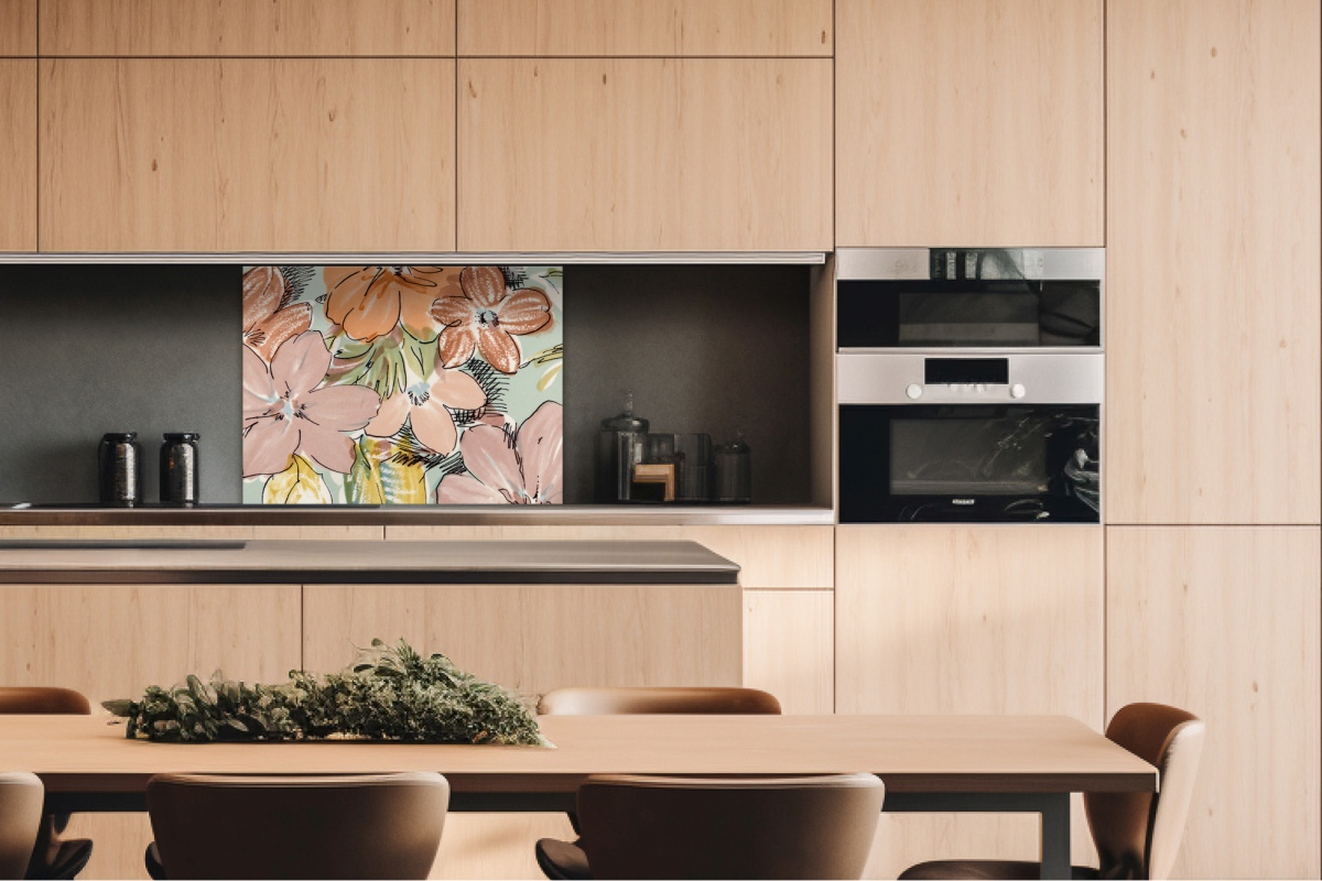 Дибонд облицовъчна плоскост за кухненски гръб Цветен флорален мотив - 80 x 60 см