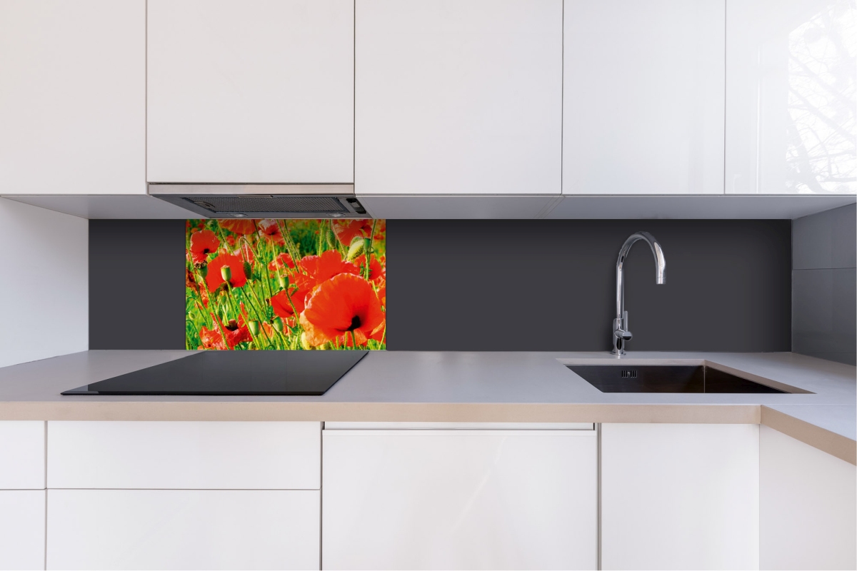 Дибонд облицовъчна плоскост за кухненски гръб Червени макове - 60 x 40 см